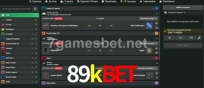 O 89kbet oferece uma grande seleção de opções de apostas em e-sports com probabilidades competitivas